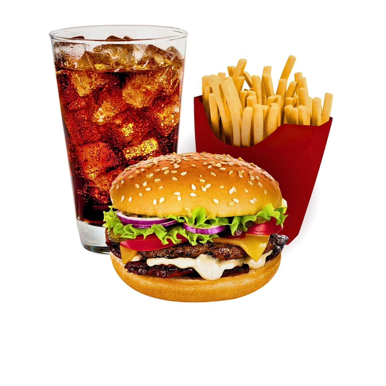 Hambúrguer, maionese, catchup, mostarda, queijo, milho, ervilha, ovo