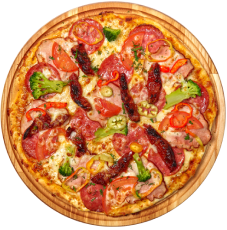 Queijo, Bacon, Calabresa, Frango, Coração, Filé, Cebola, Pimentão, Creme de Leite, Batata Palha